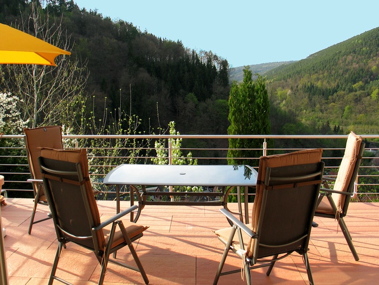 Herzlich Willkommen in unserer 105 Quadratmeter großen Ferienwohnung einschließlich Riesen-Terrasse zu Ihrer exklusiven Nutzung und wunderschönem Talblick mitten im Pfälzerwald und nahe der Südlichen Weinstraße!