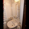 Parterre: Wohnküche mit großem Esstisch vor einem schönen Kamin; kleines Bad mit Dusche und WC; kleine Wendeltreppe ins obere Stockwerk;