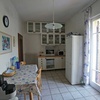 Große Wohnküche, doppeltüriger Kühlschrank mit separatem Gefrierteil, 4-Flammen-Gasherd mit Dunstabzugshaube nach außen, Miele Geschirrspüler, Backofen, Mikrowelle und diverse Küchengeräte.