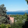Ihre Ferienwohnung ca. 400 Meter vom See entfernt, in einer alten, (aber neu renovierten) alleinstehenden Villa, mit wunderbarem 160° Blick zum See, eingebettet in einem großen südländisch angelegten und mit meterhohen Lebensbäumen eingezäunten Garten mit Oliven, Feigen, Kaki, Marille, Kirsch, Granatapfel, Trauben, Zypressen, Bambus und tropischen Palmen.