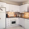 Gasherd, Elektroherd, Kühlschrank, Tiefkühlfach, Geschirrspüler, Mikrowelle, Geschirreinrichtung