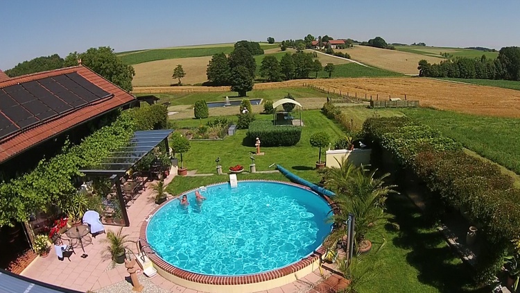 Vom Mai - Oktober steht unseren Gästen ein großzügiges, beheiztes Schwimmbad mit Gegenstromanlage zur Verfügung.