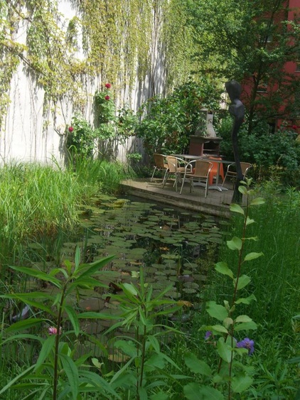 direktes gegenüber. Garten mit Terrasse an einem großen Teich ,Grill, viele Kinderspielmöglichkeiten wie Seilbahn, Trampolin, Schaukeln, Rutsche, Kindergartenhaus,