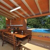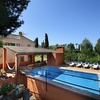 Im Aussenbereich befinden sich ein erhöhter Swimmingpool und ein gemauerter Außengrill. Auf der angrenzenden, überdachten Terrasse steht ein großer Esstisch, alles ideale Voraussetzungen, die langen warmen Sommertage und Abende im Freien zu verbringen. Eine zweite Terrasse befindet sich vor dem Haus, ebenfalls mit komfortablem Mobiliar ausgestattet, von hier aus geht ein friedlicher Blick auf eine Wiese mit Mandelbäumen.