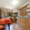 Im Erdgeschoss befinden sich das Wohnzimmer mit Kamin und Schaukelstühlen. Von hier aus führt eine Tür in das Esszimmer mit großem, solidem Esstisch aus Holz und passenden Stühle und weiter geht es in die Küche. Dieses bietet viel Platz und Komfort: Gasherd, elektrischer Backofen, Geschirrspüler, Mikrowelle und großem Kühlschrank mit Gefrierfach. Außerdem befinden sich ein Schlafzimmer und ein Dusch-Bad im Erdgeschoss.