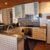 Gasherd, Elektroherd, Kühlschrank, Tiefkühlfach, Geschirrspüler, Mikrowelle, Geschirreinrichtung