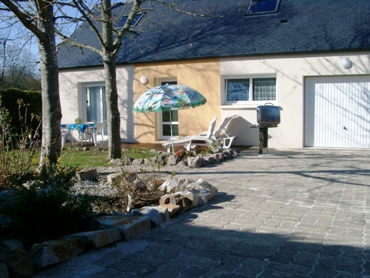 Ebenerdiges Ferienhaus mit Terrasse, Gartenmöbeln, Gartengrill.