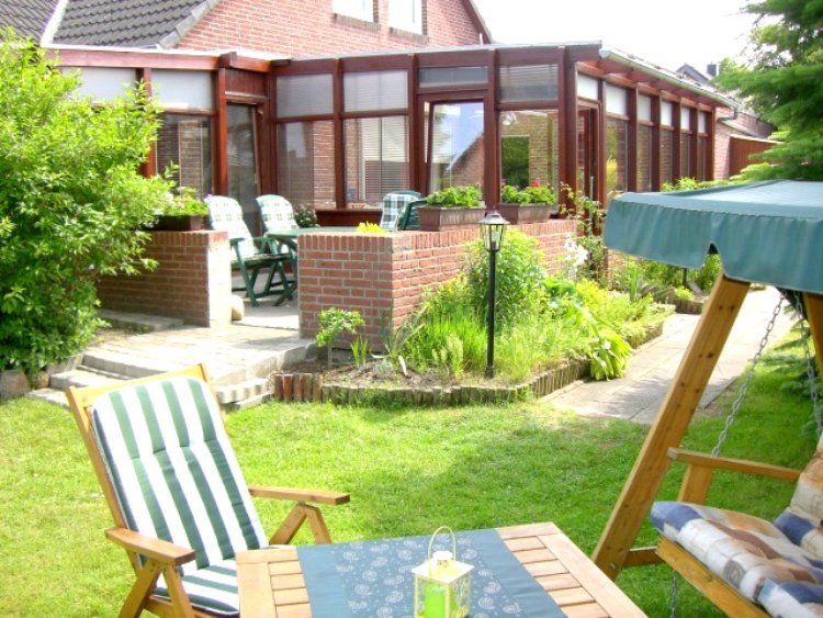 Garten mit vielen Liege- und Sitzmöglichkeiten,