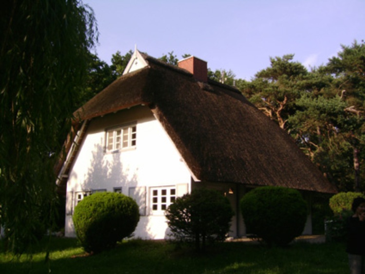 Das reetgedeckte Haus liegt inmitten eines naturbelassenen Gartens mit wunderschönem alten Baumbestand. Von der Terrasse aus schauen Sie über das Naturschutzgebiet.
