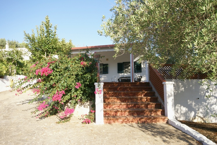 Der offen gestaltete Wohn-/Essraum ist in rustikalem Stil gehalten. Das Haus zählt insgesamt 3 Schlafzimmer (3 Doppelzimmer bzw. 2x2 Einzelbetten, und eines Ehebett KingSize 2x2mt.) und bietet somit genügend Raum für 6 Personen. 2 Badezimmer (eines mit Dusche, eines mit Badewanne/Dusche), Waschmaschine und eine gut ausgestattete Küche (z.B. dt. Kaffeemaschine, Moka, Wasserkocher, Brotschneider, Toaster) mit Spülmaschine stehen dem Gast zur Verfügung. Alle Räume sind mit Keramikfliesen ausgestattet. Eine Treppe führt Sie auf die geräumige Dachterrasse. Hier erwartet Sie ein unvergessliches Panorama: Oliven- und Mandelbäume.