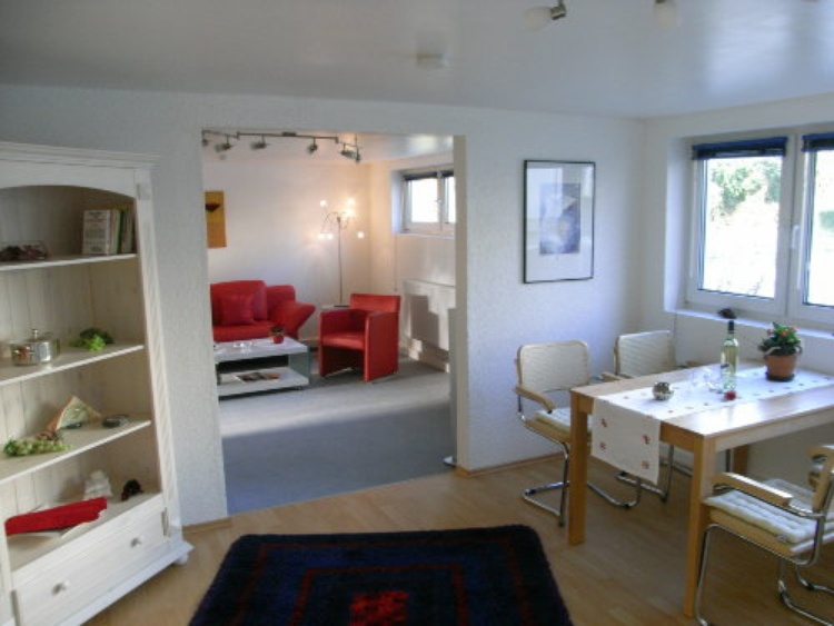 Integriert ist neben LOEWE LCD-TV mit integriertem SAT-Empfang ein PC-Arbeitsplatz inkl. DSL-Flatrate. Ergänzt wird es durch eine hochwertige Hifi-Anlage von T+A. Die Wohnfläche beträgt 70 qm2 und ist großzügig gestaltet. Der Blick aus den Fenstern geht direkt auf den gepflegten Garten.