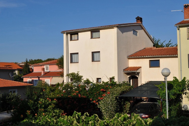 Ruhigen vorort erdgeschoss Ferienwohnung von 80m2 mit einem Schlafzimmer, Bad, Küche, Esszimmer und ein großes Wohnzimmer mit Zugang zur Terrasse und Garten in der Altstadt Pula im Süden der Halbinsel Istrien in Kroatien.