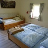 •im Obergeschoss ein großes Schlafzimmer mit vier Schlafgelegenheiten (1 Doppelbett, 2 Einzelbette, auf Wunsch Babybett)
