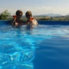 Das am Hang liegende Haus ist umgeben von etwa 2600qm Garten mit Obstbäumen, Olivenbäumen und Wiesen. Selbstverständlich steht den Gästen ein Außensitzplatz mit Gartenmöbeln und einen kleinen Pool ( D 410cm, T 120cm) zur Verfügung.