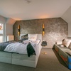 1 Schlafzimmer mit Boxspringbett (durchgehende Matratze 180 x 200), Schlafcouch (135 x 193 für 1-2 Personen), 1 SAT-TV und Kleiderschrank