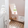 Bei der Gestaltung der Wohnung haben wir auf liebenswerte Details viel Wert gelegt: im Bad wurden historische Zementgussfleisen verlegt, alle anderen Räume haben geölte Massivholzdielen, die Füllungstüren wurden aufgearbeitet oder ergänzt, Möbel und Wände in schönen Farbklängen gestaltet. Das Mobiliar ist größtenteils antik und mit modernen Stücken kombiniert.