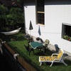 Im Garten stehen Sitzgarnitur, Sonnenschirm, Liegen und ein Griller zur Verfügung.