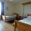 There are three bedrooms (1 double bedroom with cot and single bed, 2 bedrooms with 2 single beds, and an extra single bed if needed).