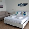 It is a private building on 2 levels: on the groundfloor there's a bathroom with a shower, a dining room with a kitchnette and a bed sofa and a window with a seaview. Upstairs there's a large bedroom with a double bed and a bedsofa, a window and a charming balcony overlooking the sea.