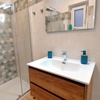 It is a private building on 2 levels: on the groundfloor there's a bathroom with a shower, a dining room with a kitchnette and a bed sofa and a window with a seaview. Upstairs there's a large bedroom with a double bed and a bedsofa, a window and a charming balcony overlooking the sea.