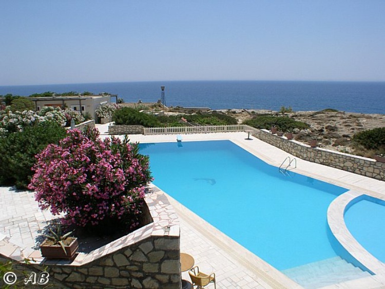 Von der apartmenteigenen Taverne (nur für Gäste) und vom Pool aus schauen Sie auf das Meer.
