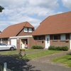 Zwischen den Doppelhäusern befinden sich Fahrradgaragen (mitgebrachte Räder) und der Hauswirtschaftsraum mit Waschmaschine und Trockner (Münzbetrieb).