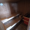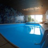 Von dort schaut in die Schwimmhalle mit Pool (ca. 4x8m) , kleiner Sauna und Dusche.