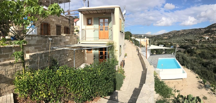 Die Lage des Ferienhauses ist am Ortsrand von Psematismenos mit einem überwältigenden Blick auf Olivenhaine, Orangen- und Zitronenbäume im Flusstal sowie einem freien Blick auf das 4 km entfernte Mittelmeer. Das Ferienhaus hat einen kombinierten Koch-, Ess- und Wohnbereich und eine bodengleiche Dusche/WC im Untergeschoss. Der Hof hat eine sehr sonnige Südostlage und verfügt über eine Sitzgelegenheit, eine traditionelle Wasserzapfstelle und eine Außendusche. Der Schlafbereich ist mit einem traditionellen, zypriotischen Doppelbett ausgestattet und liegt im Obergeschoss. Der überdachte Balkon bietet einen freien Blick auf das 4 km entfernte Mittelmeer sowie einen überwältigenden Blick auf Olivenhaine, Orangen- und Zitronenbäume im Flusstal. Das Haus ist sehr geschmackvoll und hochwertig ausgestattet, u. a. mit Antiquitäten, Kunst- und hochwertigen Haushaltsgegenständen.