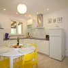 Gasherd, Elektroherd, Kühlschrank, Tiefkühlfach, Geschirrspüler, Mikrowelle, Wasserkocher, Kaffeemaschine, Toaster, Besteck, Gläser