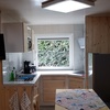 Elektroherd, Kühlschrank, Tiefkühlfach, Mikrowelle, Geschirreinrichtung, Wasserkocher, Kaffeemaschine, Toaster, Besteck, Gläser