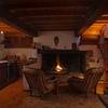 Erdgeschoss : grosses Wohnzimmer mit Küche ,eichentisch, zwei sessel,grosses offenes Kamin, Direktzugang von der Kûche aus zu einem kleinen privat garten mit gartenmöbel, zwei liegestühle mit blick auf die Wiesen .