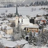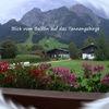 Unser Haus steht auf einer kleinen Anhöhe, nur 800 m vom Ortszentrum entfernt, mit herrlichem Ausblick auf den Ort und die Berge.