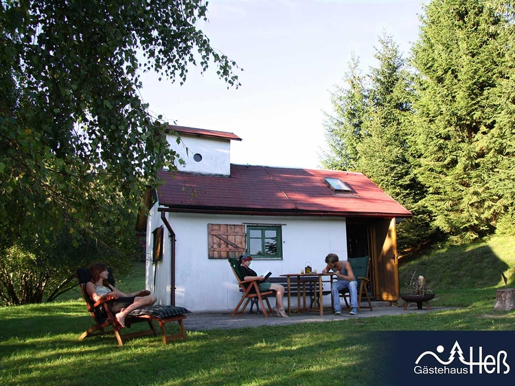 Unsere Jagdhütte „Schnepfenloch“ mit Alleinlage am Waldrand bietet Ihnen die Möglichkeit einer schlichten Übernachtung inmitten der Natur. Die Jagdhütte hat weder Strom noch TV, ist aber dafür mit Propangaslampen, einem Gasheizgerät, Gaskühlschrank und Gaskochfeld ausgestattet. Ausreichend Geschirr, Besteck und Kochutensilien befinden sich vor Ort. Fließend Wasser kommt aus einer Quelle vom Berg, deren Nutzung in den Wintermonaten eingeschränkt ist. Im Erdgeschoss befindet sich ein Aufenthaltsraum mit großer Sitzecke und Sofa und im Dachgeschoss ist eine Schlafmöglichkeit für 4 Personen gegeben. Für die Übernachtung müssen unsere Gäste einen Schlafsack und ggf. Decken mitbringen. Das Areal ist mit Bäumen umwachsen, ohne den wundervollen Ausblick ins malerische Tal zu schmälern. Ein Toilettenhäuschen ist auch vorhanden.