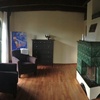 Die geräumige und dennoch sehr gemütliche untere Wohnung besticht durch ihren wunderschönen Kamin und die offene Balkendecke des Fachwerkhauses.Die großzügigen Terrassentüren lassen viel Licht rein und bieten eine herrliche Atmosphäre mit Blick auf die Oder.
