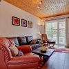 In der unteren Etage befindet sich der Wohnbereich mit Kamin, der Küchenbereich und das Duschbad mit WC.