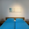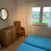 Das Schlafzimmer liegt ebenfalls zur Gartenseite und ist mit hellen Möbeln ausgestattet. Es verfügt über ein Doppelbett (180 x 200 cm Liegefläche) sowie einen Wäscheschrank. Die Garderobe und ein begehbarer Kleiderschrank befinden sich im Flur. Das geräumige und freundliche Bad beinhaltet Dusche, WC und Waschbecken. Ein Föhn ist vorhanden. Handtücher und Bettwäsche sind inkludiert. Alle Fenster sind mit elektrischen Rollladen und Insektenschutzgittern ausgestattet.