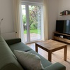 Der gemütliche Wohn-/Essbereich ist mit modernen, geschmackvollen Möbeln ausgestattet. Sowohl von der Couchgarnitur als auch vom Essplatz haben Sie einen herrlichen Blick ins Grüne. Die großzügige Küchenzeile fügt sich harmonisch in den Raum ein. Sie ist ausgestattet mit Kühlschrank incl. Gefrierfach, Herd mit vier Kochfeldern, Dunstabzugshaube, Spülmaschine, Wasserkocher, Kaffeemaschine, Toaster sowie Geschirr, Besteck und Kochutensilien. Das mit hochwertiger Matratze und Unterfederung ausgestattete Sofa steht als zweiter Schlafplatz (Liegefläche von 160 x 200 cm) zur Verfügung. Ferner sind ein 50 Zoll Smart-TV sowie eine Stereoanlage vorhanden. WLAN ist inclusive.