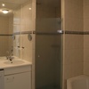 * Badezimmer mit Sechseck-Badewanne, Dusche und Waschtrockner