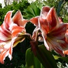Der schönen Garten hat zwei herrliche Palmen und tropische Pflanzen.