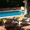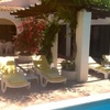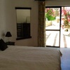 Von hier kommen Sie zu einem Balkon mit Blick auf Terasse, Garten und Pool.