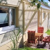 Überdachte Außenterrasse mit Sitzmöbel und Tisch