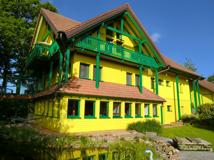 Das Bio-Holzhaus bietet, u. a. mit seiner Wandstrahlungsheizung und fernbeheiztem Kachelofen sowie der elektro- und baubiologischen Ausstattung, bestes WohnKlima.