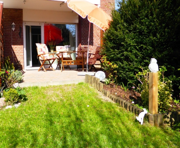 Die schön angelegte Terrasse ist so gelegen, das Sie bis in den späten Abend die Sonne geniessen können. Aufgrund der Bepflanzung ist die Terrasse fast nicht einsehbar. Über einen Eingang gelangen Sie in Ihr 60 qm großes Appartement, in dem sich alle Räume auf einer Ebene befinden.