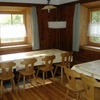 Ein grosser Essenraum mit Kachelofen und Plätze für 40 Personen