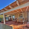 Das große Grundstück besteht zum größten Teil aus Mediterranen Pflanzen, Olivenbäumen und Wiese und bietet verschiedene Sitzecken. Das Rauschen des Baches versiegt nur Mitte Juli und August.
