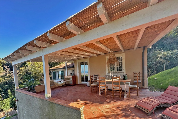 Von der 50 m² großen Wohnterrasse hat man einen wunderschönen Blick Richtung Meer und Marciana Marina.