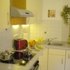 Elektroherd, Kühlschrank, Tiefkühlfach, Mikrowelle, Geschirreinrichtung, Wasserkocher, Kaffeemaschine, Toaster, Besteck, Gläser