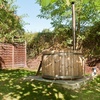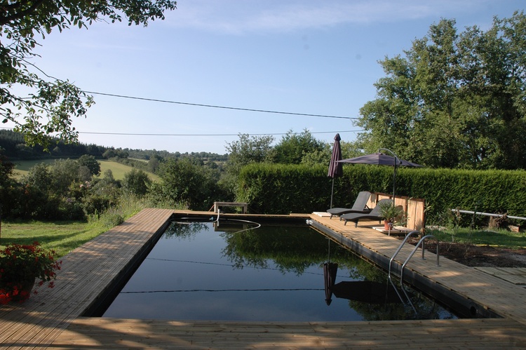 Hier genießen Sie in privater Atmosfäre. Im zugehörigen Gartengrundstück befindet sich ein beheizbares Wannenbad (Hottub). Sie haben einen eigenen Zugang zum (biologischen) Schwimmbecken. Von der überdachten Terasse mit gemütlicher Sitzecke aus gelangen sie in eine modern eingerichtete Essküche die ausgerüstet ist mit einem Magnetron/Backofen, einer Wasch- sowie einer Abwaschmachine, Kühlschrank mit Frostfach, Kaffeemachine, Nespresso Kaffeemaschine und Wasserkocher. Angrenzend befindet sich das Badezimmer mit Dusche und Toilette. Durch die Küche gelangen sie in das gemütlich eingerichtete Wohnzimmer in dem sich unteranderem ein großer LCD-Fernseher, DVD-spieler, USB-lautsprecher und ein, im ursprünglichem Kamin aufgestellter Holzofen befinden. Im Obergeschoß ist das Schlafzimmer daß mit einem Doppelbett mit Boxspring- Matratze (1,60×2,00m) versehen ist.