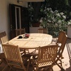 The house is air-conditioned during hot seasons and heated in cold days. It has two bedrooms, one with a double bed and the other with two single beds. The living room has a large couch that can be converted to another double bed. There is also a large dining table, TV, radio and DVD player.