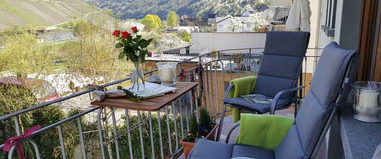 Der Wohnbereich der Ferienwohnung beeindruckt nicht nur durch seinen TV mit Satellitenempfang und DVD-Player, sondern auch durch einen bezaubernden Blick auf die Mosel. Der Ausgang zum Balkon eröffnet Ihnen eine Panoramaaussicht, die zum Verweilen einlädt. Hier können Sie den Alltag hinter sich lassen und pure Entspannung genießen.